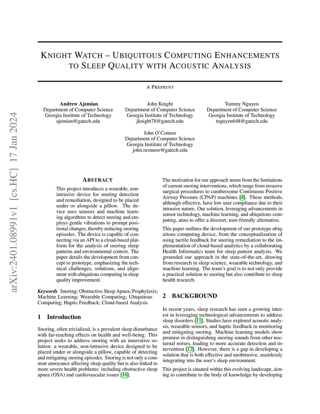 Knight Watch: Ubiquitous Computing Enhancements To Sleep Quality With