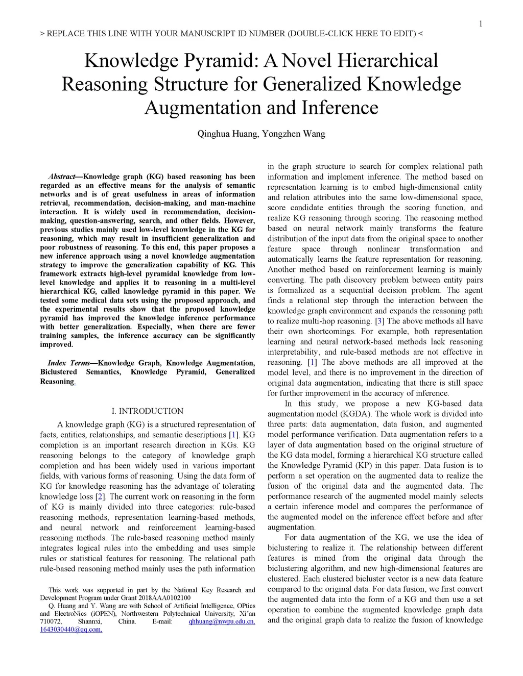 Knowledge graph (KG) based reasoning has been regarded as an effective means for the analysis of semantic networks and is of great usefulness in areas of information retrieval, recommendation, decision-making, and man-machine interaction. It is widely used in recommendation, decision-making, question-answering, search, and other fields. However, previous studies mainly used low-level knowledge in the KG for reasoning, which may result in insufficient generalization and poor robustness of reasoning. To this end, this paper proposes a new inference approach using a novel knowledge augmentation strategy to improve the generalization capability of KG. This framework extracts high-level pyramidal knowledge from low-level knowledge and applies it to reasoning in a multi-level hierarchical KG, called knowledge pyramid in this paper. We tested some medical data sets using the proposed approach, and the experimental results show that the proposed knowledge pyramid has improved the knowledge inference performance with better generalization. Especially, when there are fewer training samples, the inference accuracy can be significantly improved.