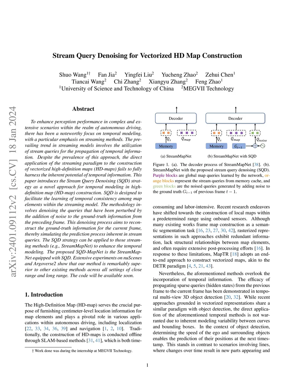 Stream Query Denoising for Vectorized HD Map Construction