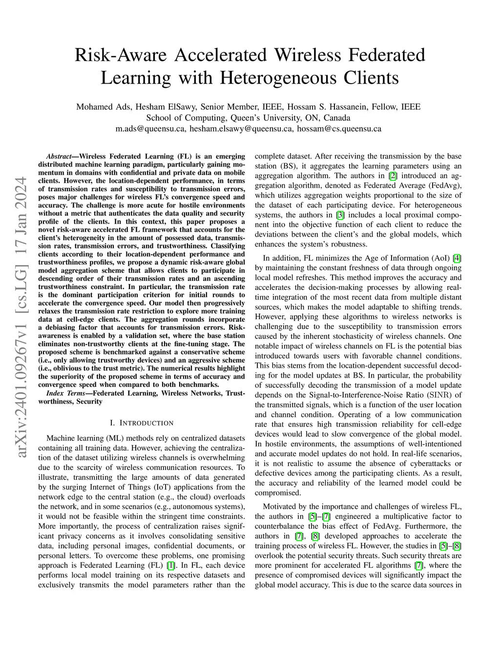 Risk-Aware Accelerated Wireless Federated Learning with Heterogeneous