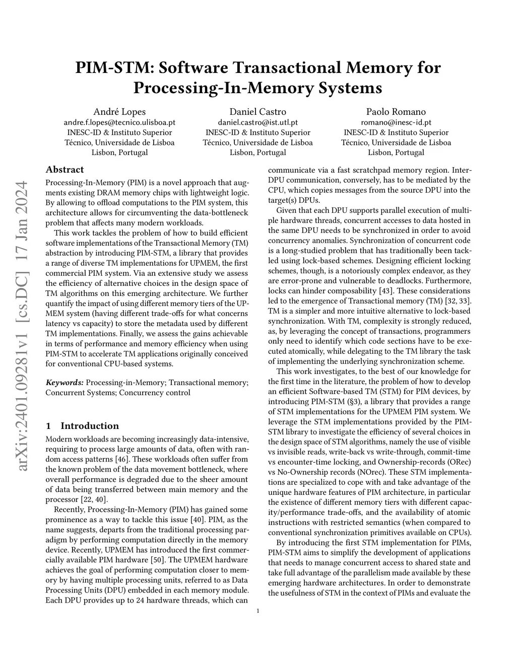 PIM-STM: Software Transactional Memory for Processing-In-Memory Systems