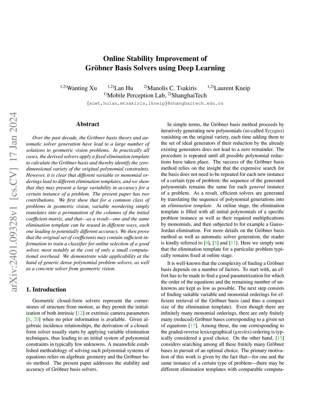 Over the past decade, the Gr\"obner basis theory and automatic solver generation have lead to a large number of solutions to geometric vision problems. In practically all cases, the derived solvers apply a fixed elimination template to calculate the Gr\"obner basis and thereby identify the zero-dimensional variety of the original polynomial constraints. However, it is clear that different variable or monomial orderings lead to different elimination templates, and we show that they may present a large variability in accuracy for a certain instance of a problem. The present paper has two contributions. We first show that for a common class of problems in geometric vision, variable reordering simply translates into a permutation of the columns of the initial coefficient matrix, and that -- as a result -- one and the same elimination template can be reused in different ways, each one leading to potentially different accuracy. We then prove that the original set of coefficients may contain sufficient information to train a classifier for online selection of a good solver, most notably at the cost of only a small computational overhead. We demonstrate wide applicability at the hand of generic dense polynomial problem solvers, as well as a concrete solver from geometric vision.