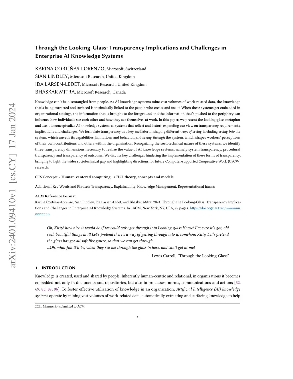 Through the Looking-Glass: Transparency Implications and Challenges in Enterprise AI Knowledge Systems