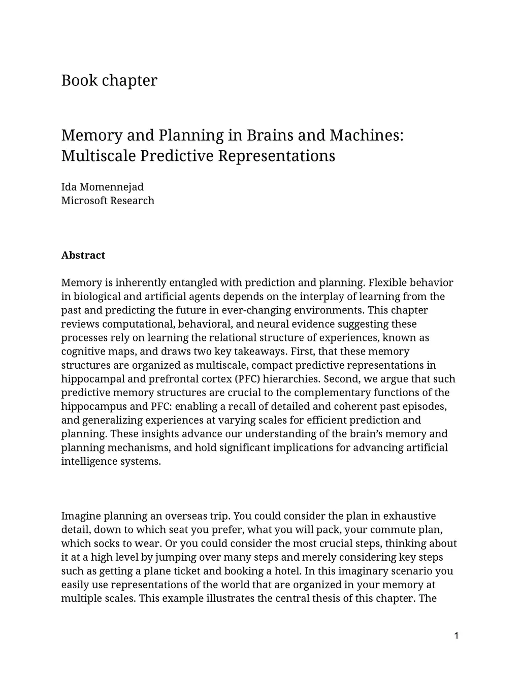 Memory is inherently entangled with prediction and planning. Flexible behavior in biological and artificial agents depends on the interplay of learning from the past and predicting the future in ever-changing environments. This chapter reviews computational, behavioral, and neural evidence suggesting these processes rely on learning the relational structure of experiences, known as cognitive maps, and draws two key takeaways. First, that these memory structures are organized as multiscale, compact predictive representations in hippocampal and prefrontal cortex, or PFC, hierarchies. Second, we argue that such predictive memory structures are crucial to the complementary functions of the hippocampus and PFC, both for enabling a recall of detailed and coherent past episodes as well as generalizing experiences at varying scales for efficient prediction and planning. These insights advance our understanding of memory and planning mechanisms in the brain and hold significant implications for advancing artificial intelligence systems.