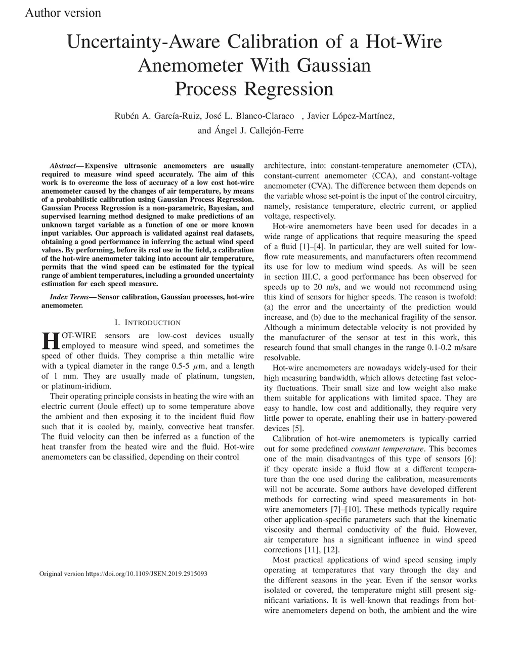 Uncertainty-Aware Calibration of a Hot-Wire Anemometer With Gaussian