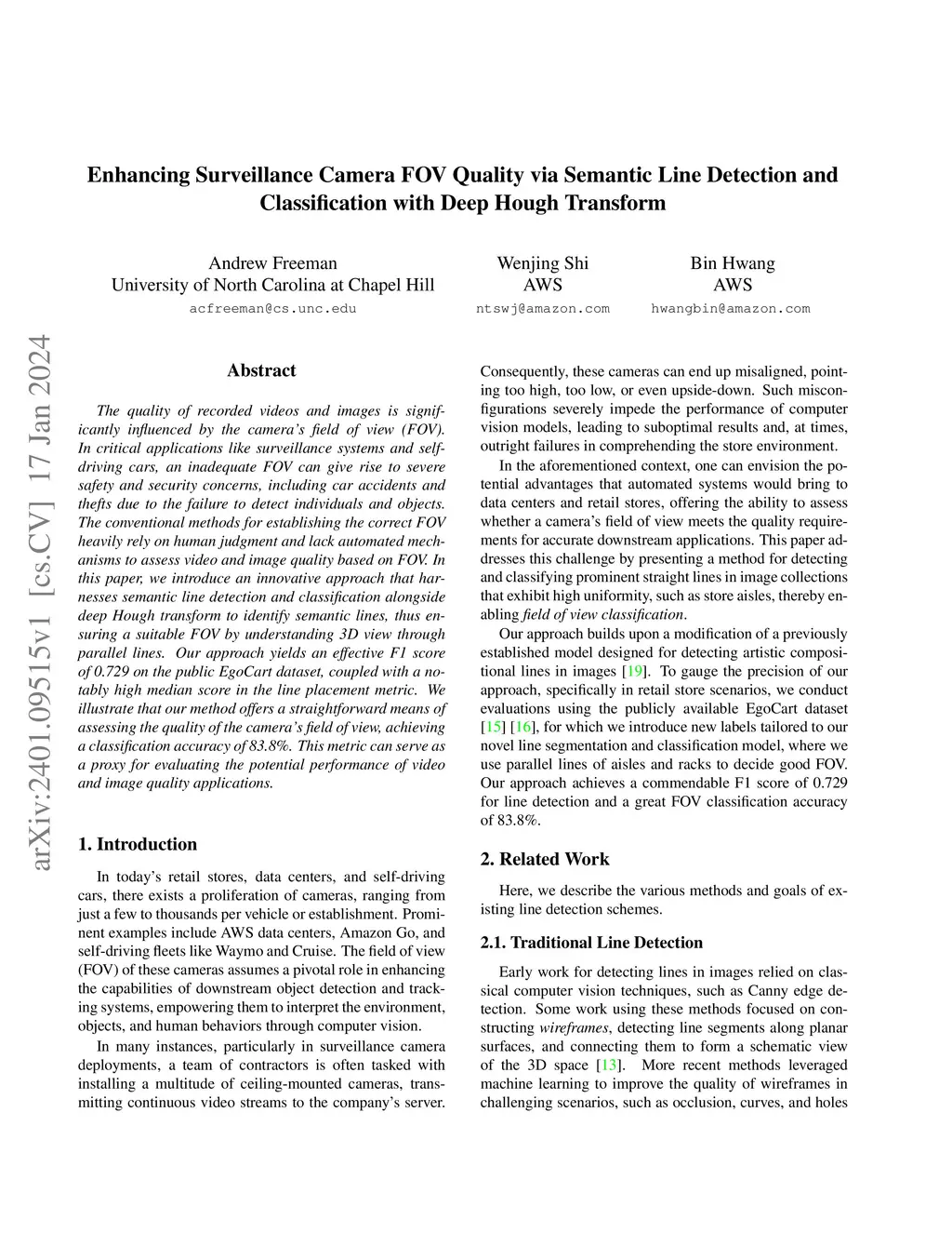 Enhancing Surveillance Camera FOV Quality via Semantic Line Detection
