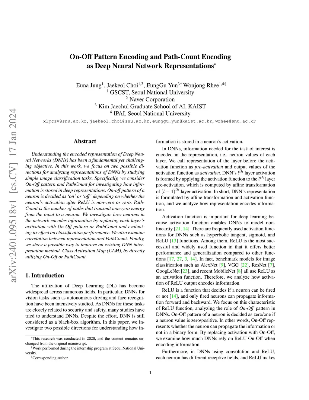 On-Off Pattern Encoding and Path-Count Encoding as Deep Neural Network