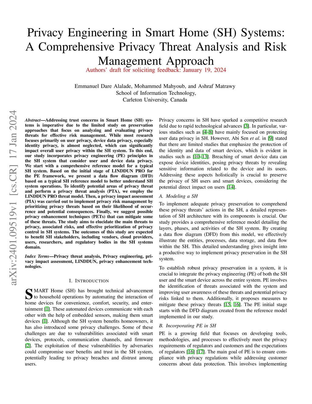 Privacy Engineering in Smart Home (SH) Systems: A Comprehensive Privacy Threat Analysis and Risk Management Approach
