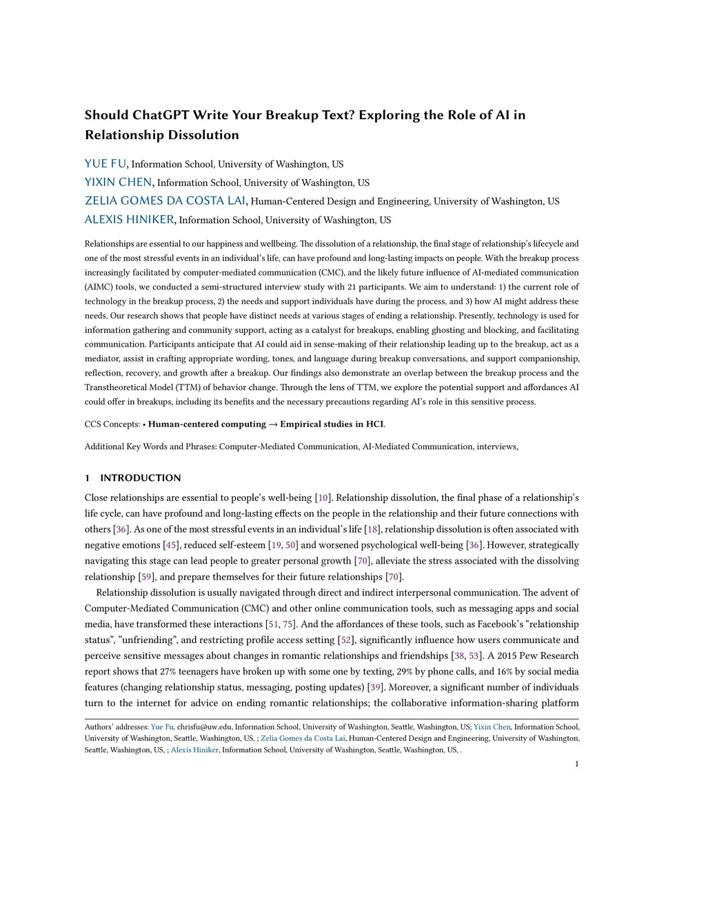 Should ChatGPT Write Your Breakup Text? Exploring the Role of AI in