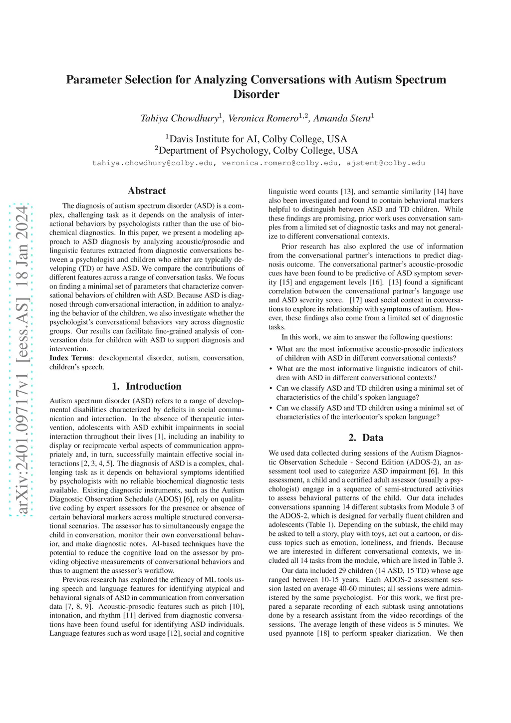 Parameter Selection for Analyzing Conversations with Autism Spectrum