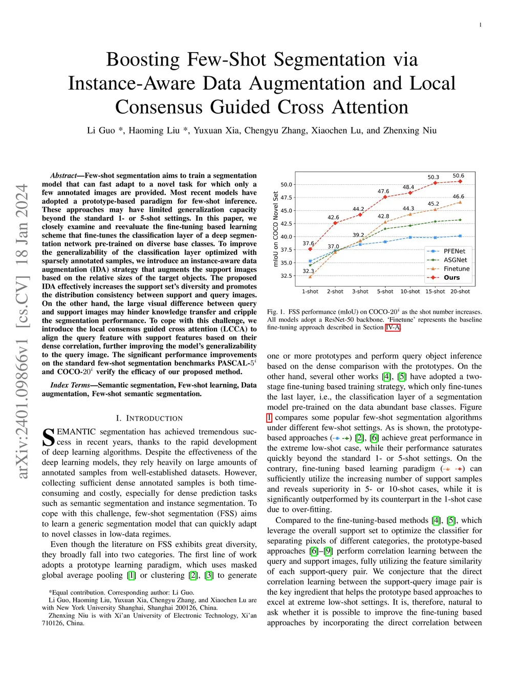 Few-shot segmentation aims to train a segmentation model that can fast adapt to a novel task for which only a few annotated images are provided. Most recent models have adopted a prototype-based paradigm for few-shot inference. These approaches may have limited generalization capacity beyond the standard 1- or 5-shot settings. In this paper, we closely examine and reevaluate the fine-tuning based learning scheme that fine-tunes the classification layer of a deep segmentation network pre-trained on diverse base classes. To improve the generalizability of the classification layer optimized with sparsely annotated samples, we introduce an instance-aware data augmentation (IDA) strategy that augments the support images based on the relative sizes of the target objects. The proposed IDA effectively increases the support set's diversity and promotes the distribution consistency between support and query images. On the other hand, the large visual difference between query and support images may hinder knowledge transfer and cripple the segmentation performance. To cope with this challenge, we introduce the local consensus guided cross attention (LCCA) to align the query feature with support features based on their dense correlation, further improving the model's generalizability to the query image. The significant performance improvements on the standard few-shot segmentation benchmarks PASCAL- and COCO- verify the efficacy of our proposed method.