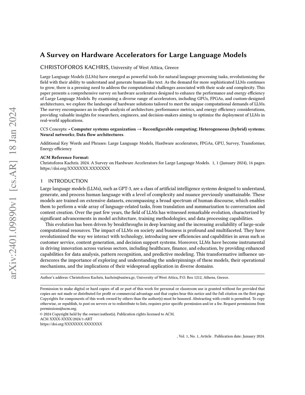 Large Language Models (LLMs) have emerged as powerful tools for natural language processing tasks, revolutionizing the field with their ability to understand and generate human-like text. As the demand for more sophisticated LLMs continues to grow, there is a pressing need to address the computational challenges associated with their scale and complexity. This paper presents a comprehensive survey on hardware accelerators designed to enhance the performance and energy efficiency of Large Language Models. By examining a diverse range of accelerators, including GPUs, FPGAs, and custom-designed architectures, we explore the landscape of hardware solutions tailored to meet the unique computational demands of LLMs. The survey encompasses an in-depth analysis of architecture, performance metrics, and energy efficiency considerations, providing valuable insights for researchers, engineers, and decision-makers aiming to optimize the deployment of LLMs in real-world applications.