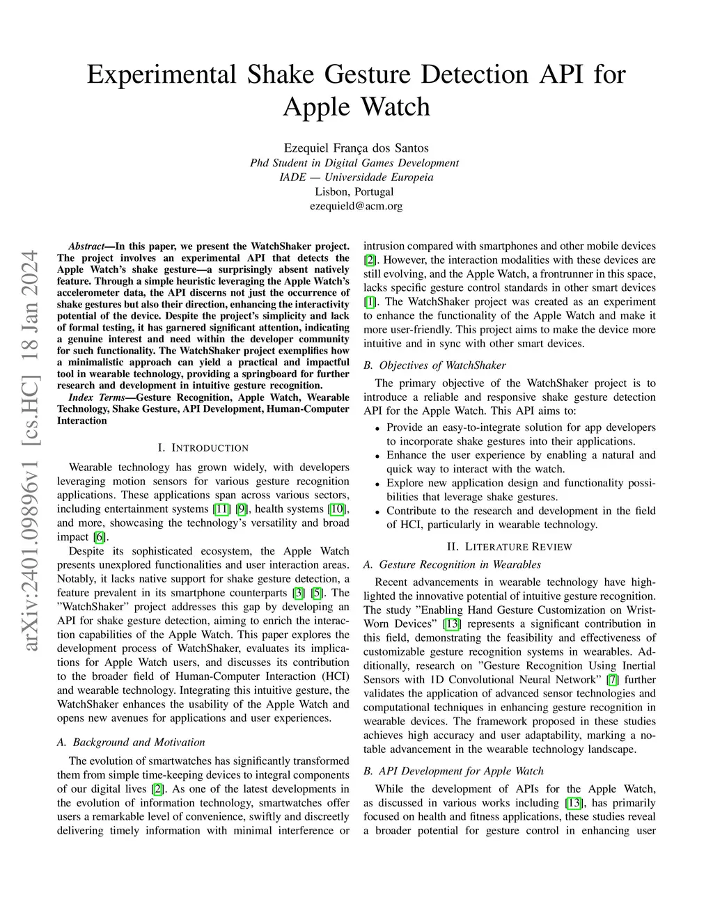 In this paper we present the WatchShaker project The project involves an experimental API that detects the Apple Watchs shake gesturea surprisingly absent natively feature Through a simple heuristic leveraging the Apple Watchs accelerometer data the API discerns not just the occurrence of shake gestures but also their direction enhancing the interactivity potential of the device Despite the projects simplicity and lack of formal testing it has garnered significant attention indicating a genuine interest and need within the developer community for such functionality The WatchShaker project exemplifies how a minimalistic approach can yield a practical and impactful tool in wearable technology providing a springboard for further research and development in intuitive gesture recognition