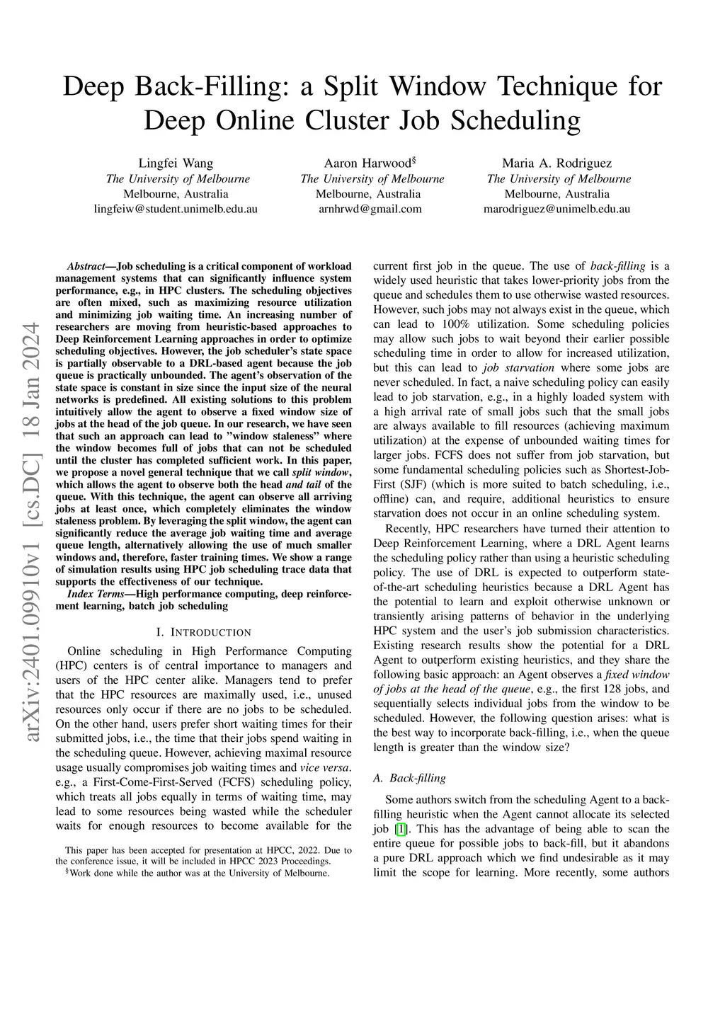 Deep Back-Filling: a Split Window Technique for Deep Online Cluster Job