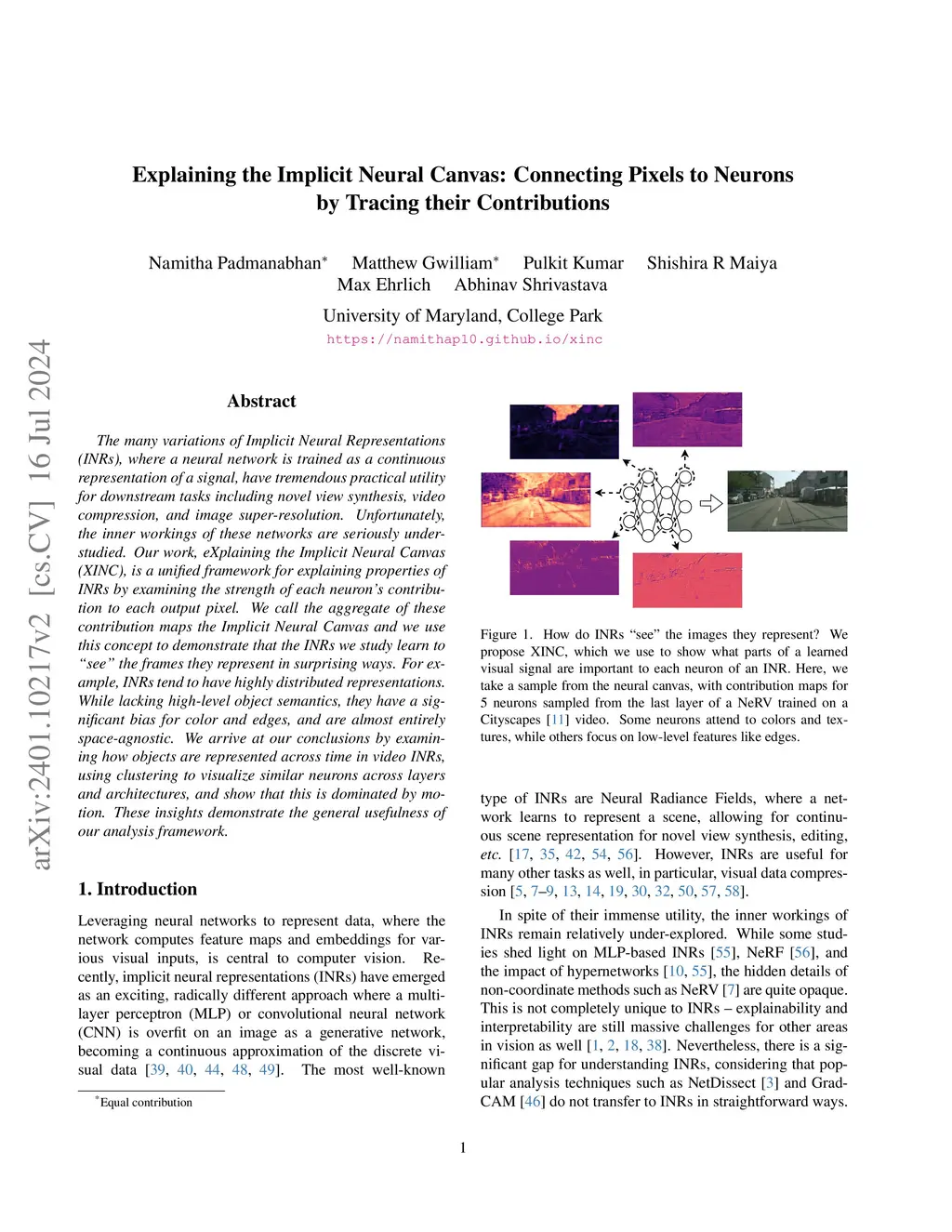 Explaining the Implicit Neural Canvas: Connecting Pixels to Neurons by