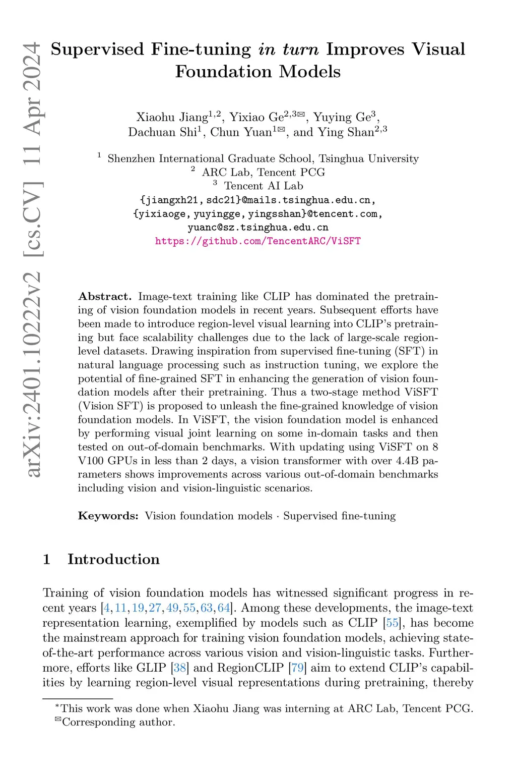Supervised Fine-tuning in turn Improves Visual Foundation Models