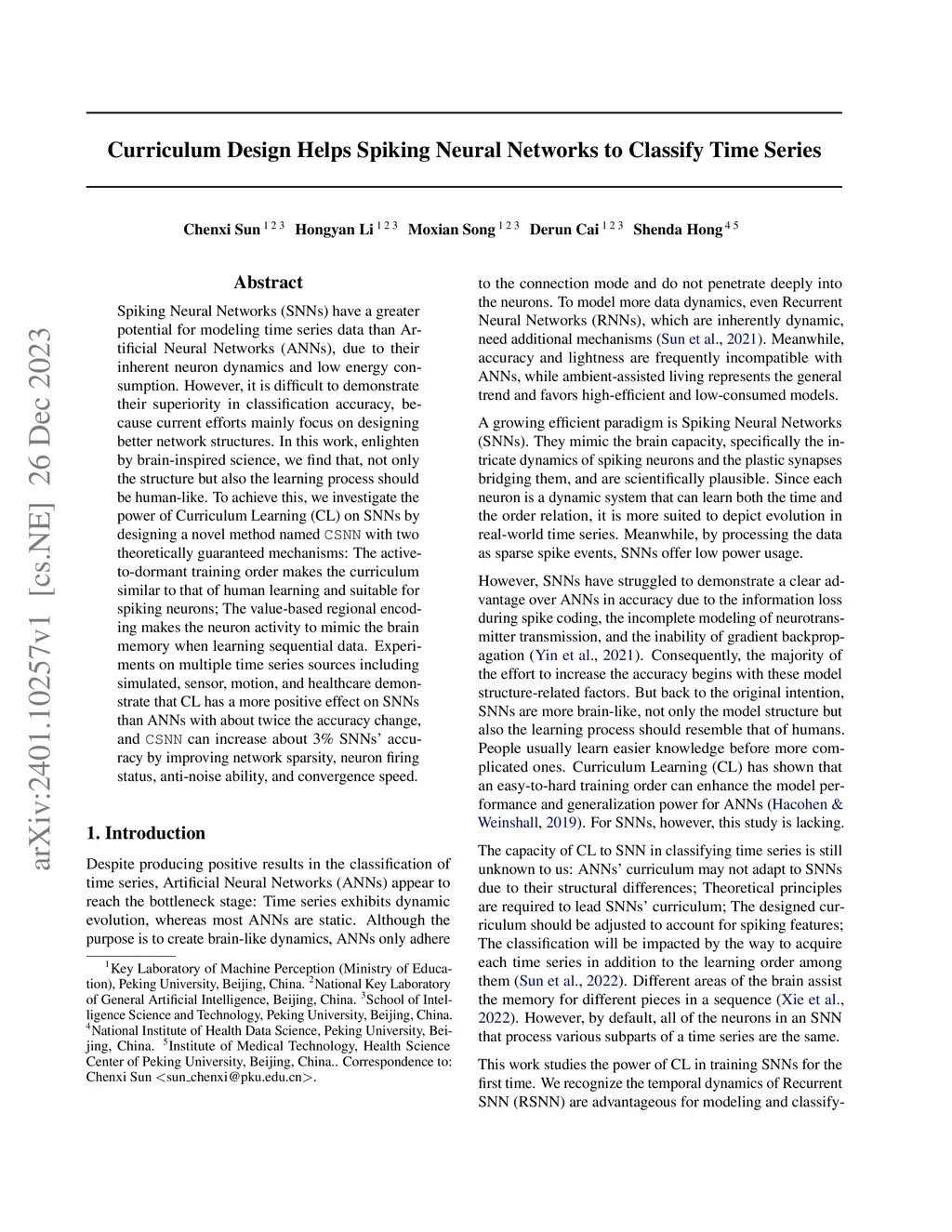 Curriculum Design Helps Spiking Neural Networks to Classify Time Series