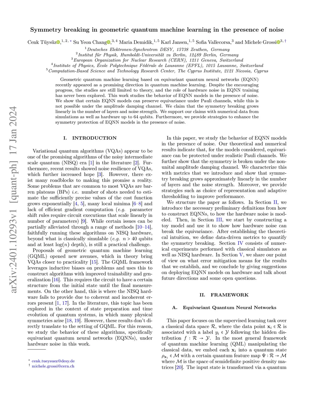 Symmetry breaking in geometric quantum machine learning in the presence