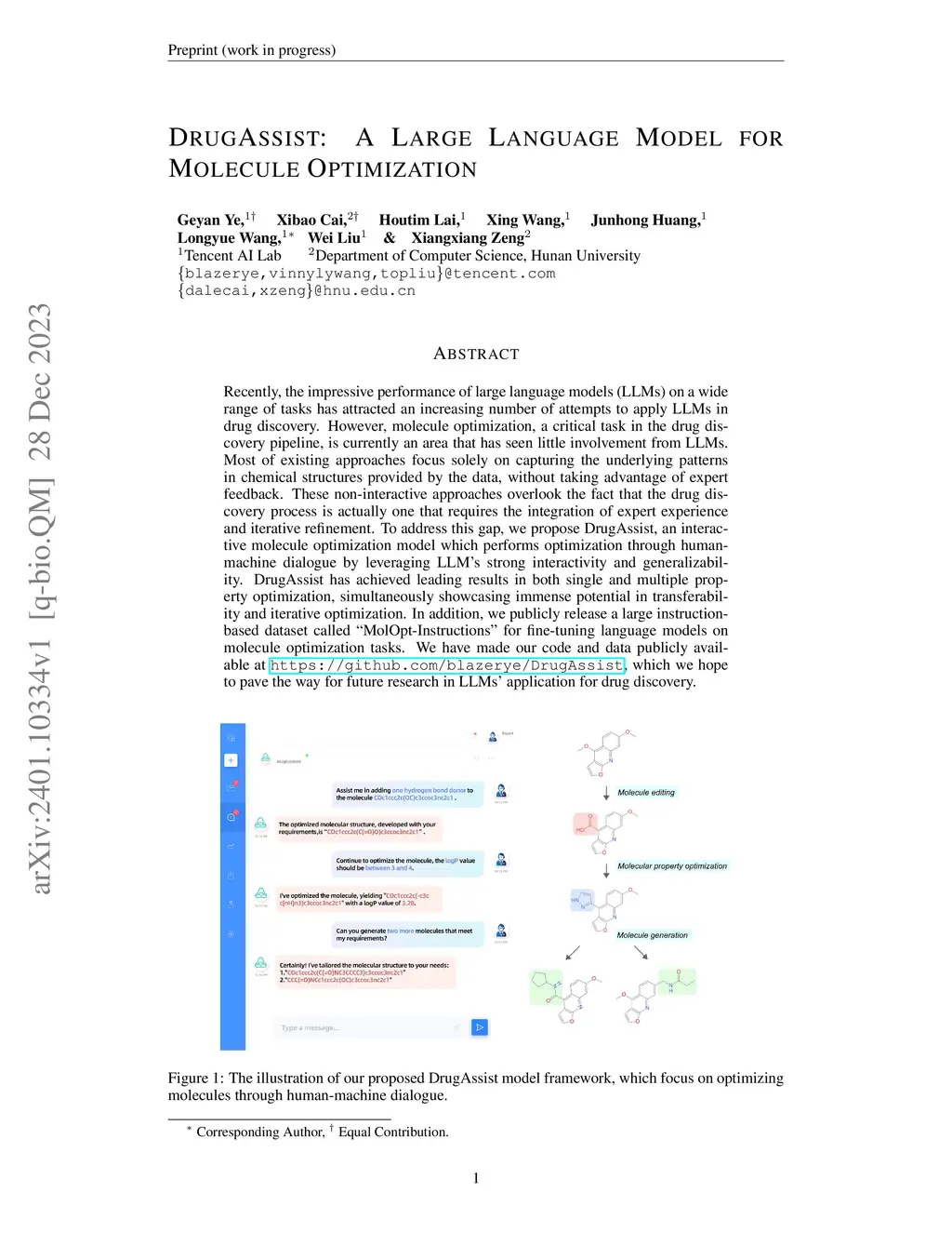 Recently, the impressive performance of large language models (LLMs) on a wide range of tasks has attracted an increasing number of attempts to apply LLMs in drug discovery. However, molecule optimization, a critical task in the drug discovery pipeline, is currently an area that has seen little involvement from LLMs. Most of existing approaches focus solely on capturing the underlying patterns in chemical structures provided by the data, without taking advantage of expert feedback. These non-interactive approaches overlook the fact that the drug discovery process is actually one that requires the integration of expert experience and iterative refinement. To address this gap, we propose DrugAssist, an interactive molecule optimization model which performs optimization through human-machine dialogue by leveraging LLM's strong interactivity and generalizability. DrugAssist has achieved leading results in both single and multiple property optimization, simultaneously showcasing immense potential in transferability and iterative optimization. In addition, we publicly release a large instruction-based dataset called MolOpt-Instructions for fine-tuning language models on molecule optimization tasks. We have made our code and data publicly available at https://github.com/blazerye/DrugAssist, which we hope to pave the way for future research in LLMs' application for drug discovery.