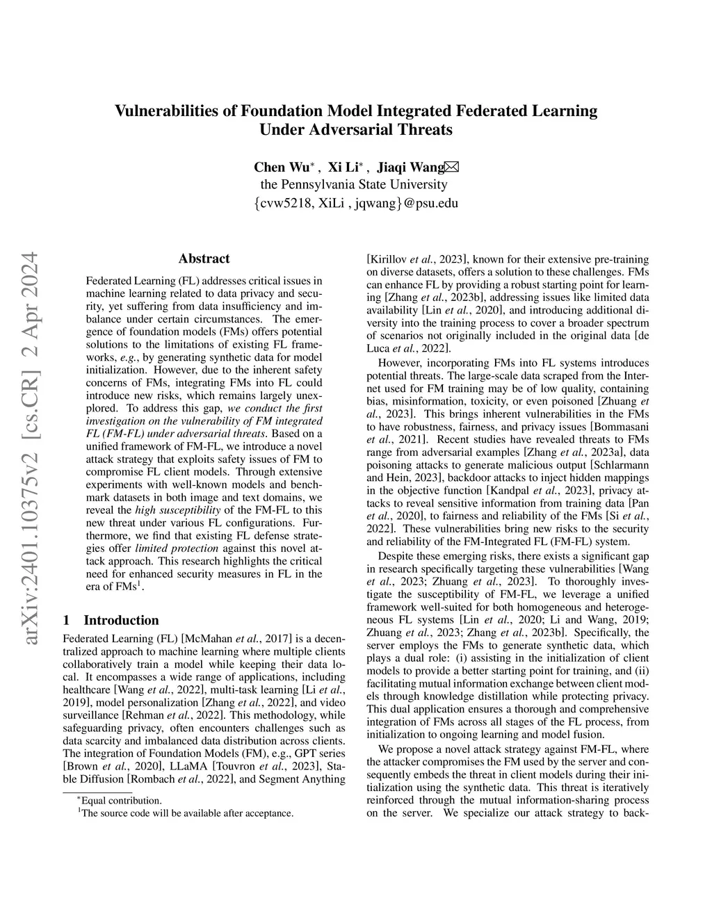 Federated Learning (FL), a privacy-preserving machine learning framework, faces significant data-related challenges. For example, the lack of suitable public datasets leads to ineffective information exchange, especially in heterogeneous environments with uneven data distribution. Foundation Models (FMs) offer a promising solution by generating synthetic datasets that mimic client data distributions, aiding model initialization and knowledge sharing among clients. However, the interaction between FMs and FL introduces new attack vectors that remain largely unexplored. This work therefore assesses the backdoor vulnerabilities exploiting FMs, where attackers exploit safety issues in FMs and poison synthetic datasets to compromise the entire system. Unlike traditional attacks, these new threats are characterized by their one-time, external nature, requiring minimal involvement in FL training. Given these uniqueness, current FL defense strategies provide limited robustness against this novel attack approach. Extensive experiments across image and text domains reveal the high susceptibility of FL to these novel threats, emphasizing the urgent need for enhanced security measures in FL in the era of FMs.