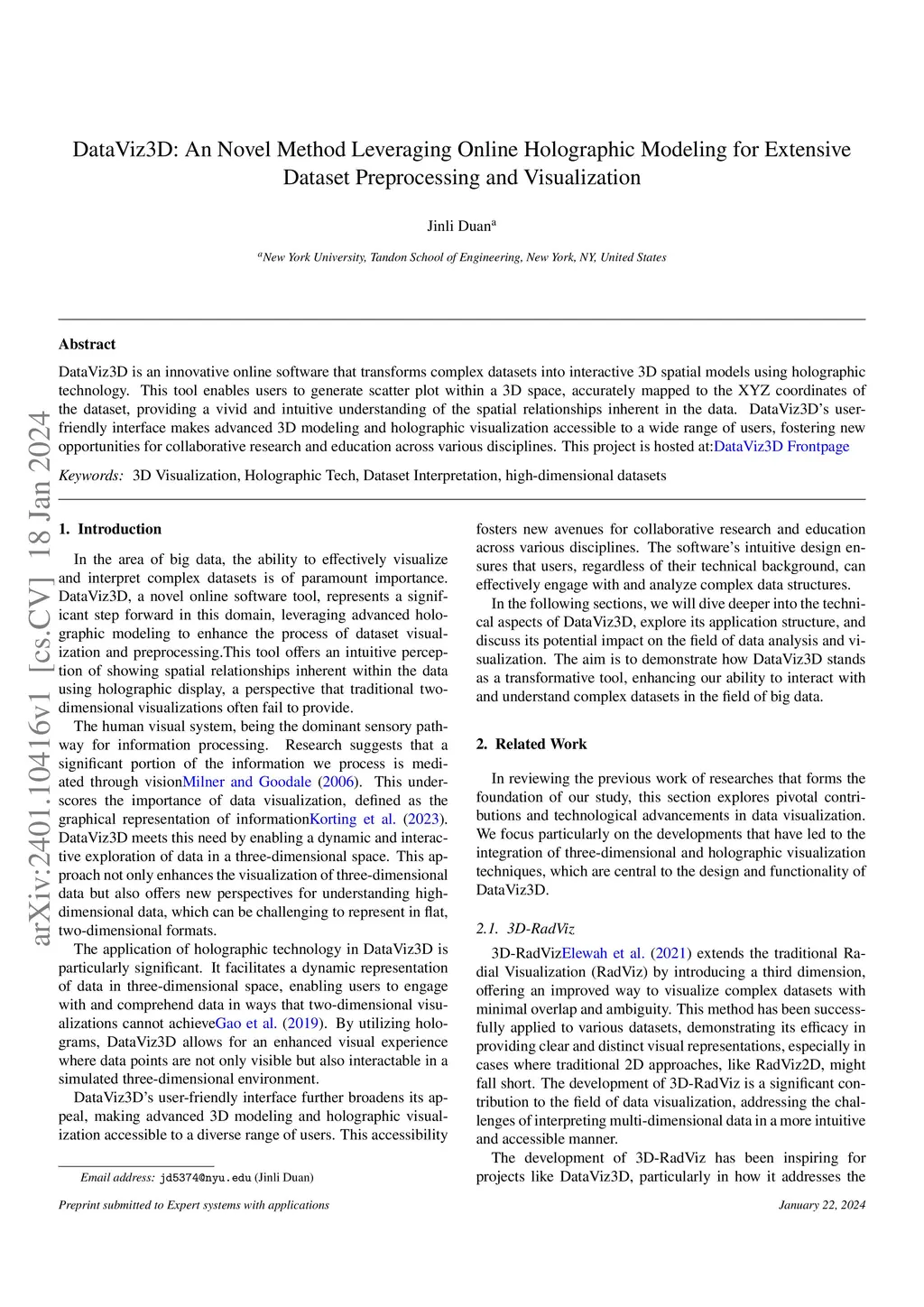 DataViz3D: An Novel Method Leveraging Online Holographic Modeling for