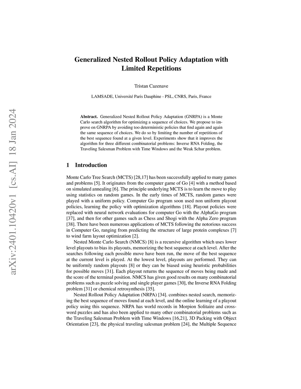 Generalized Nested Rollout Policy Adaptation (GNRPA) is a Monte Carlo search algorithm for optimizing a sequence of choices. We propose to improve on GNRPA by avoiding too deterministic policies that find again and again the same sequence of choices. We do so by limiting the number of repetitions of the best sequence found at a given level. Experiments show that it improves the algorithm for three different combinatorial problems: Inverse RNA Folding, the Traveling Salesman Problem with Time Windows and the Weak Schur problem.
