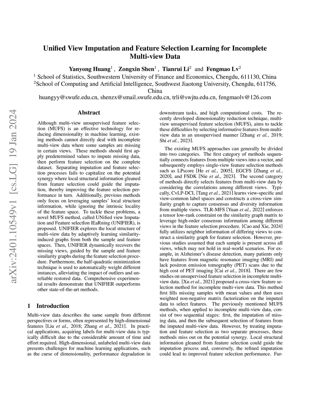 Unified View Imputation and Feature Selection Learning for Incomplete