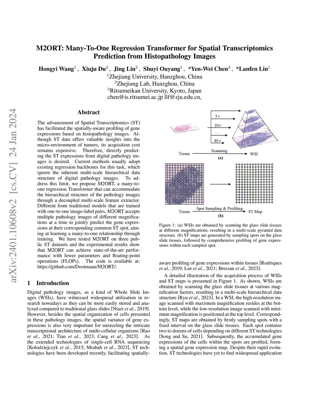 M2ORT: Many-To-One Regression Transformer for Spatial Transcriptomics