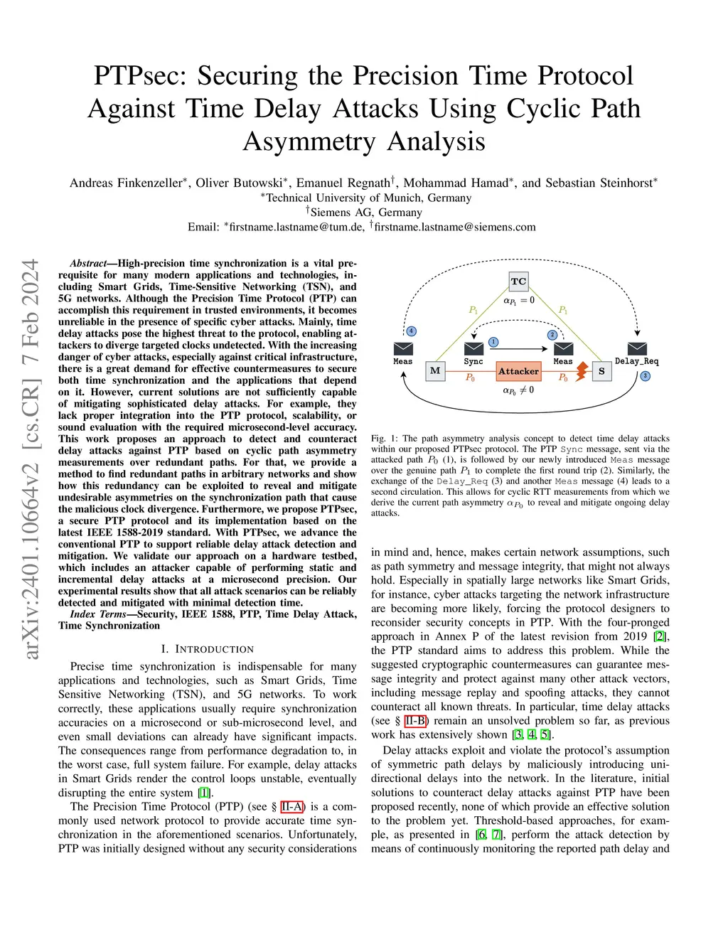 PTPsec: Securing the Precision Time Protocol Against Time Delay Attacks