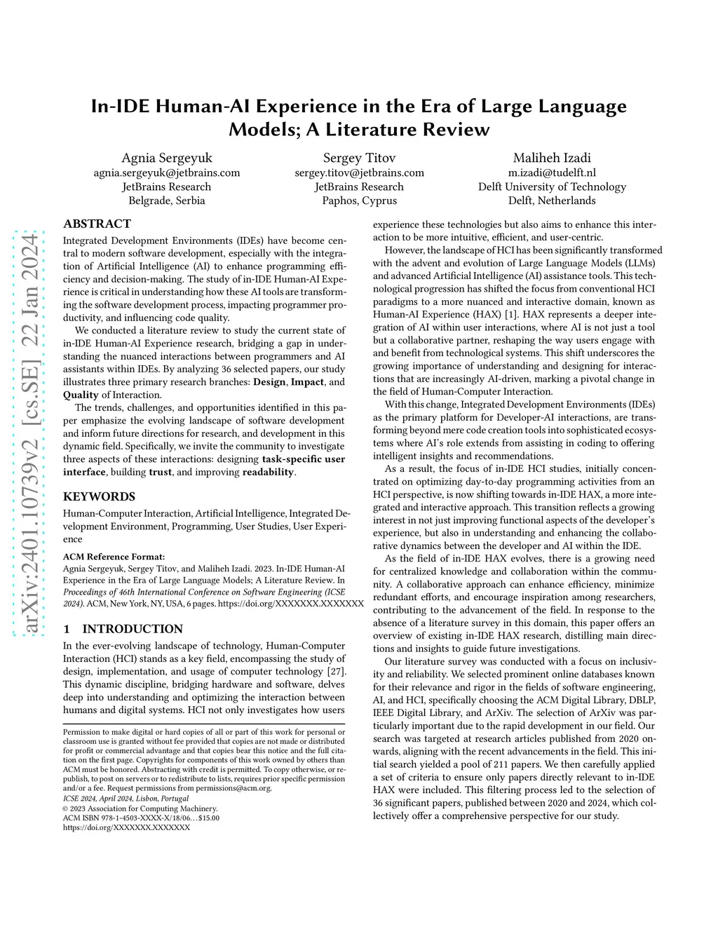 In-IDE Human-AI Experience in the Era of Large Language Models; A