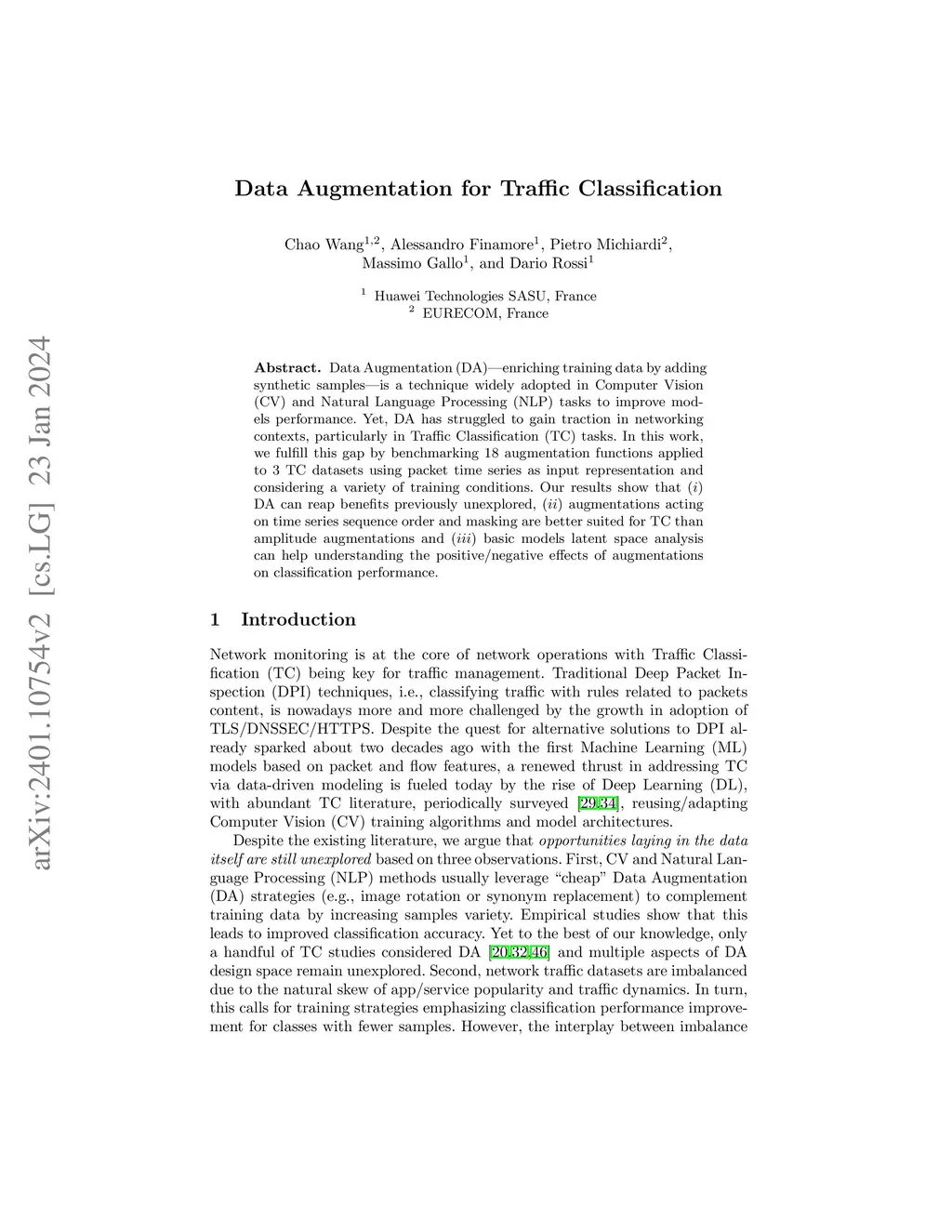 Data Augmentation for Traffic Classification