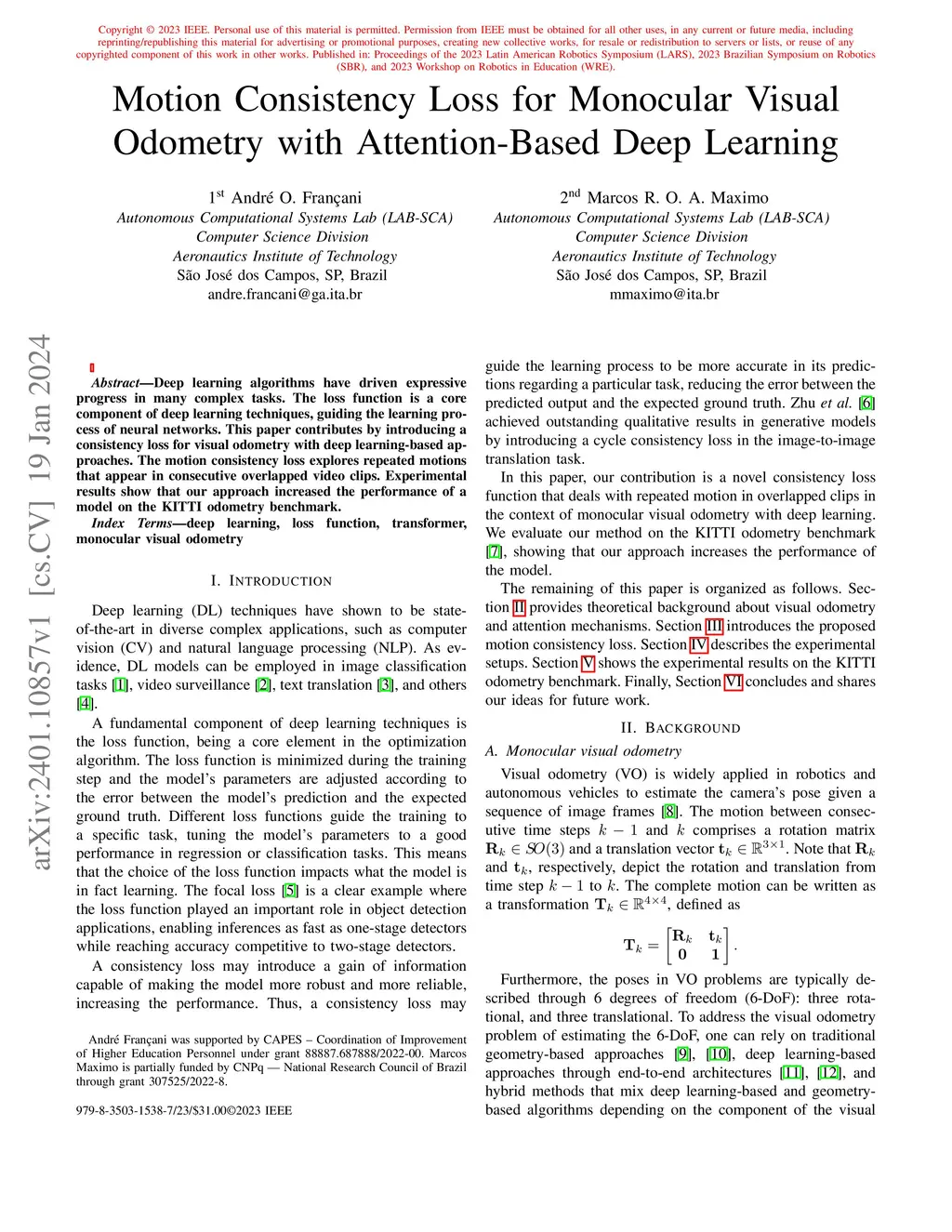 Motion Consistency Loss for Monocular Visual Odometry with