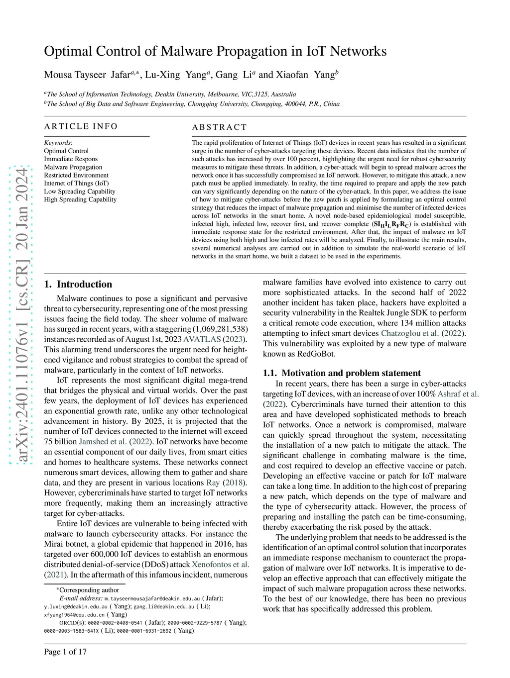 The rapid proliferation of Internet of Things (IoT) devices in recent years has resulted in a significant surge in the number of cyber-attacks targeting these devices. Recent data indicates that the number of such attacks has increased by over 100 percent, highlighting the urgent need for robust cybersecurity measures to mitigate these threats. In addition, a cyber-attack will begin to spread malware across the network once it has successfully compromised an IoT network. However, to mitigate this attack, a new patch must be applied immediately. In reality, the time required to prepare and apply the new patch can vary significantly depending on the nature of the cyber-attack. In this paper, we address the issue of how to mitigate cyber-attacks before the new patch is applied by formulating an optimal control strategy that reduces the impact of malware propagation and minimise the number of infected devices across IoT networks in the smart home. A novel node-based epidemiological model susceptible, infected high, infected low, recover first, and recover complete(SI_HI_LR_FR_C) is established with immediate response state for the restricted environment. After that, the impact of malware on IoT devices using both high and low infected rates will be analyzed. Finally, to illustrate the main results, several numerical analyses are carried out in addition to simulate the real-world scenario of IoT networks in the smart home, we built a dataset to be used in the experiments.