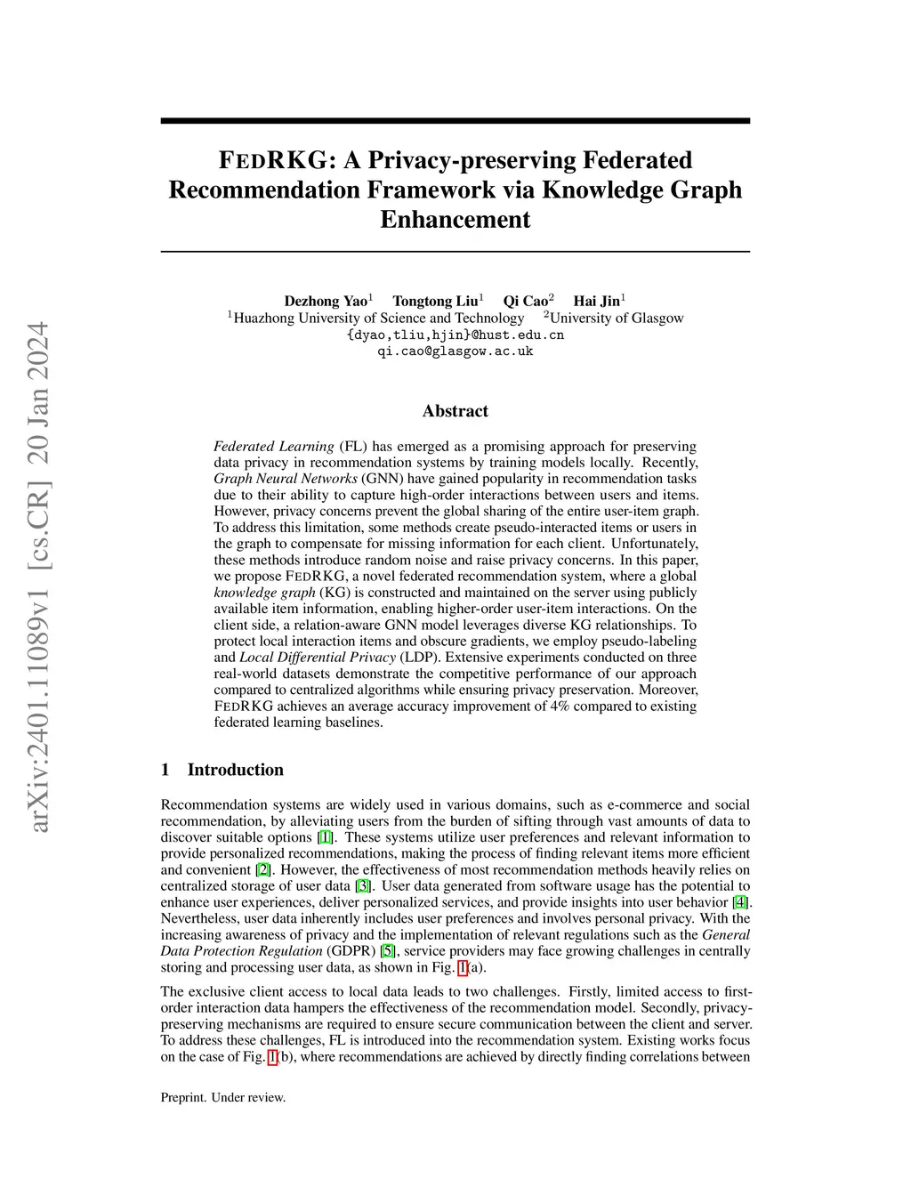 FedRKG: A Privacy-preserving Federated Recommendation Framework via