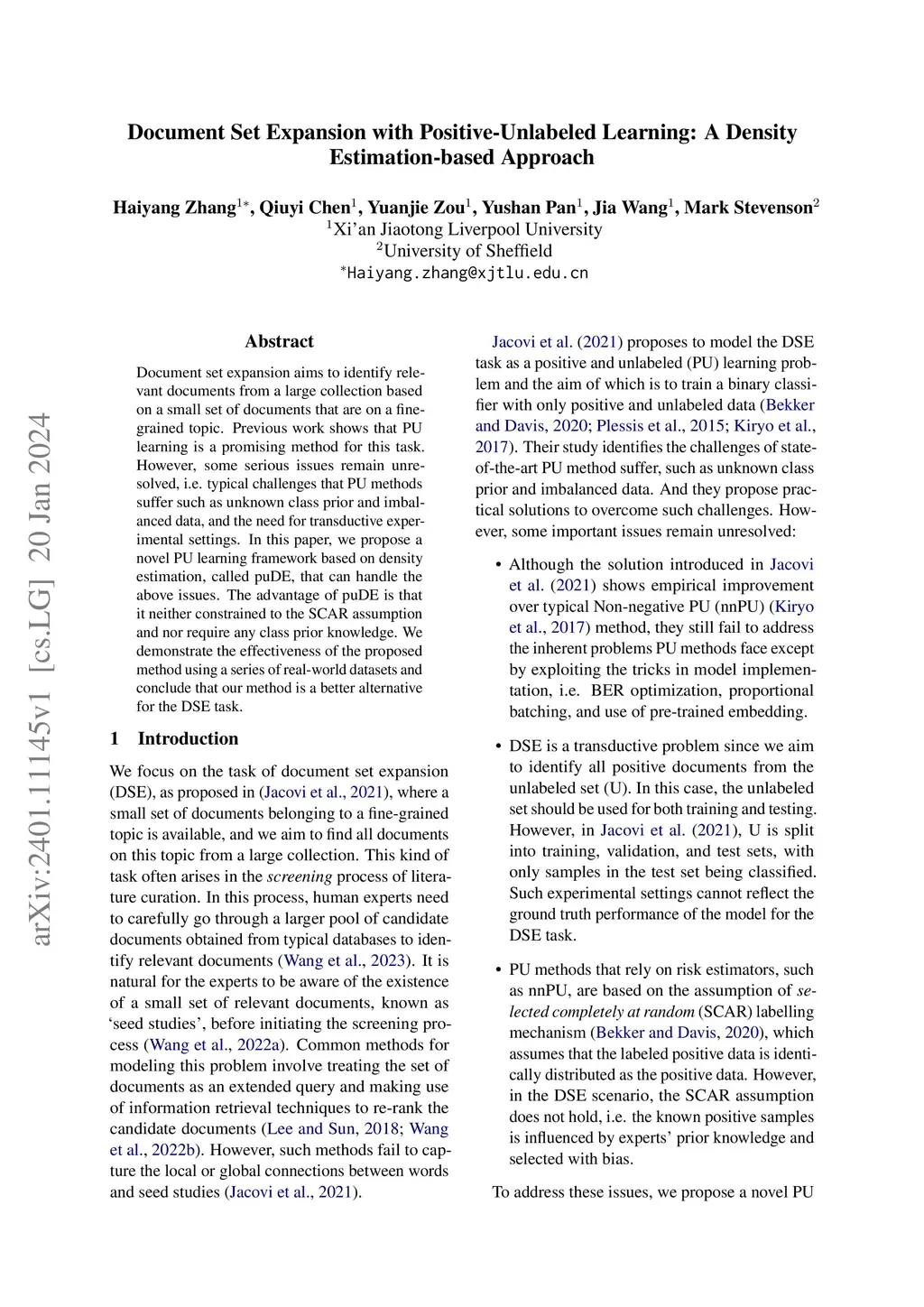 Document Set Expansion with Positive-Unlabeled Learning: A Density