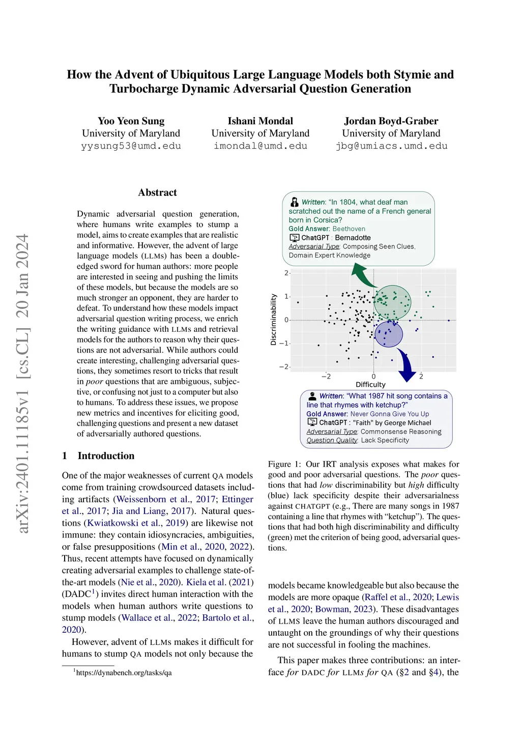 Dynamic adversarial question generation, where humans write examples to stump a model, aims to create examples that are realistic and informative. However, the advent of large language models (LLMs) has been a double-edged sword for human authors: more people are interested in seeing and pushing the limits of these models, but because the models are so much stronger an opponent, they are harder to defeat. To understand how these models impact adversarial question writing process, we enrich the writing guidance with LLMs and retrieval models for the authors to reason why their questions are not adversarial. While authors could create interesting, challenging adversarial questions, they sometimes resort to tricks that result in poor questions that are ambiguous, subjective, or confusing not just to a computer but also to humans. To address these issues, we propose new metrics and incentives for eliciting good, challenging questions and present a new dataset of adversarially authored questions.