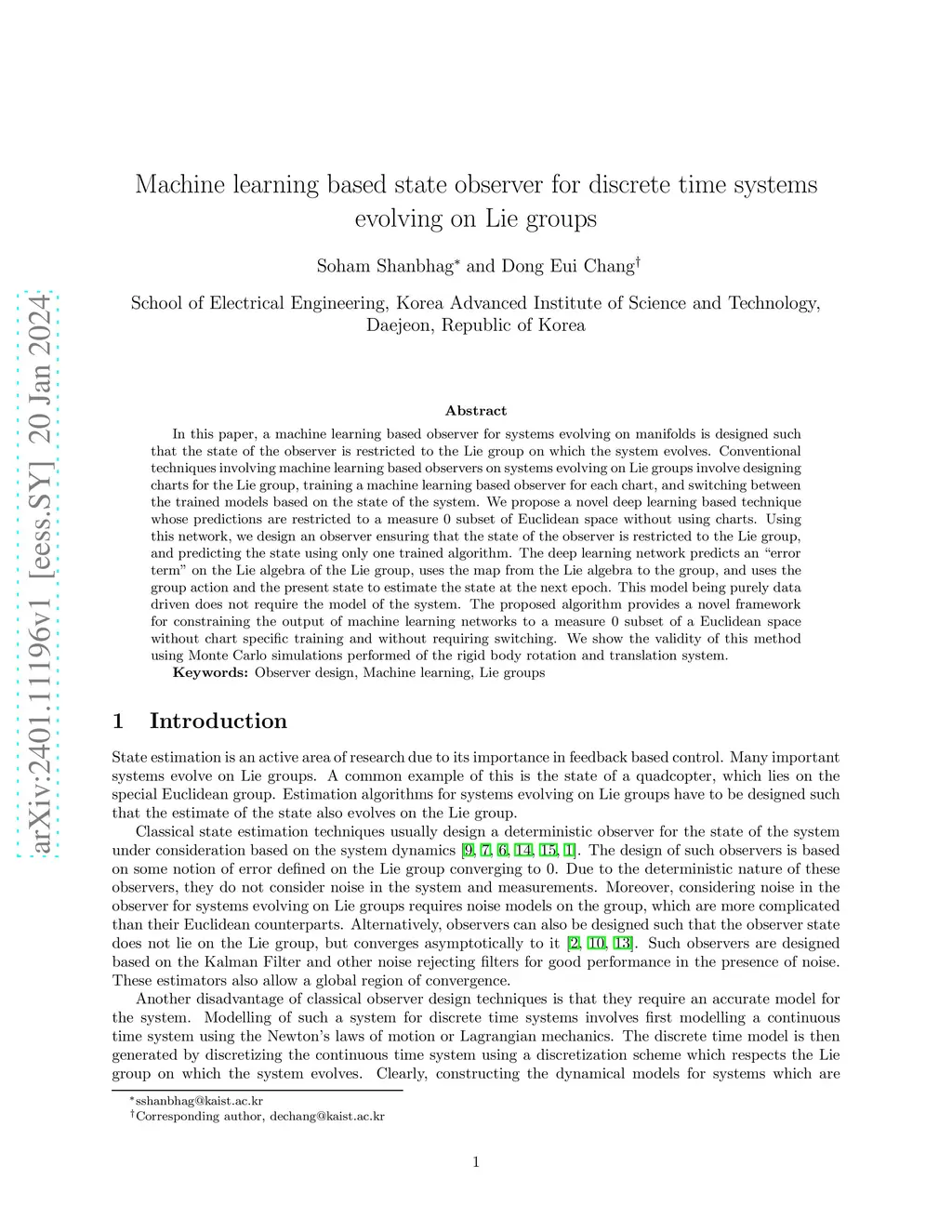 In this paper, a machine learning based observer for systems evolving on manifolds is designed such that the state of the observer is restricted to the Lie group on which the system evolves. Conventional techniques involving machine learning based observers on systems evolving on Lie groups involve designing charts for the Lie group, training a machine learning based observer for each chart, and switching between the trained models based on the state of the system. We propose a novel deep learning based technique whose predictions are restricted to a measure 0 subset of Euclidean space without using charts. Using this network, we design an observer ensuring that the state of the observer is restricted to the Lie group, and predicting the state using only one trained algorithm. The deep learning network predicts an ``error term'' on the Lie algebra of the Lie group, uses the map from the Lie algebra to the group, and uses the group action and the present state to estimate the state at the next epoch. This model being purely data driven does not require the model of the system. The proposed algorithm provides a novel framework for constraining the output of machine learning networks to a measure 0 subset of a Euclidean space without chart specific training and without requiring switching. We show the validity of this method using Monte Carlo simulations performed of the rigid body rotation and translation system.