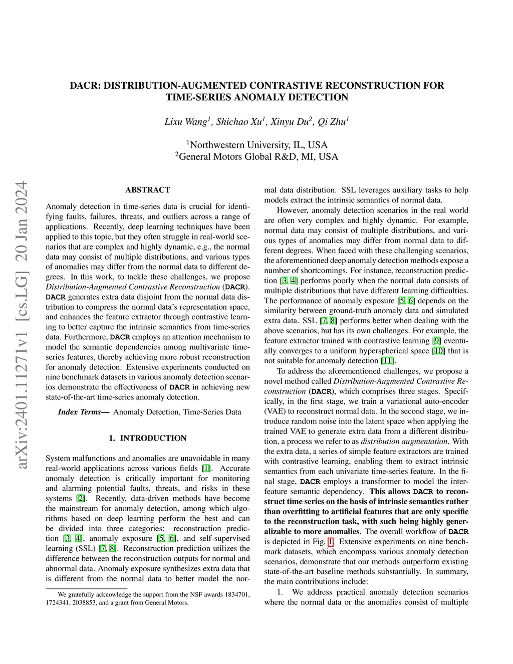 DACR: Distribution-Augmented Contrastive Reconstruction for Time-Series