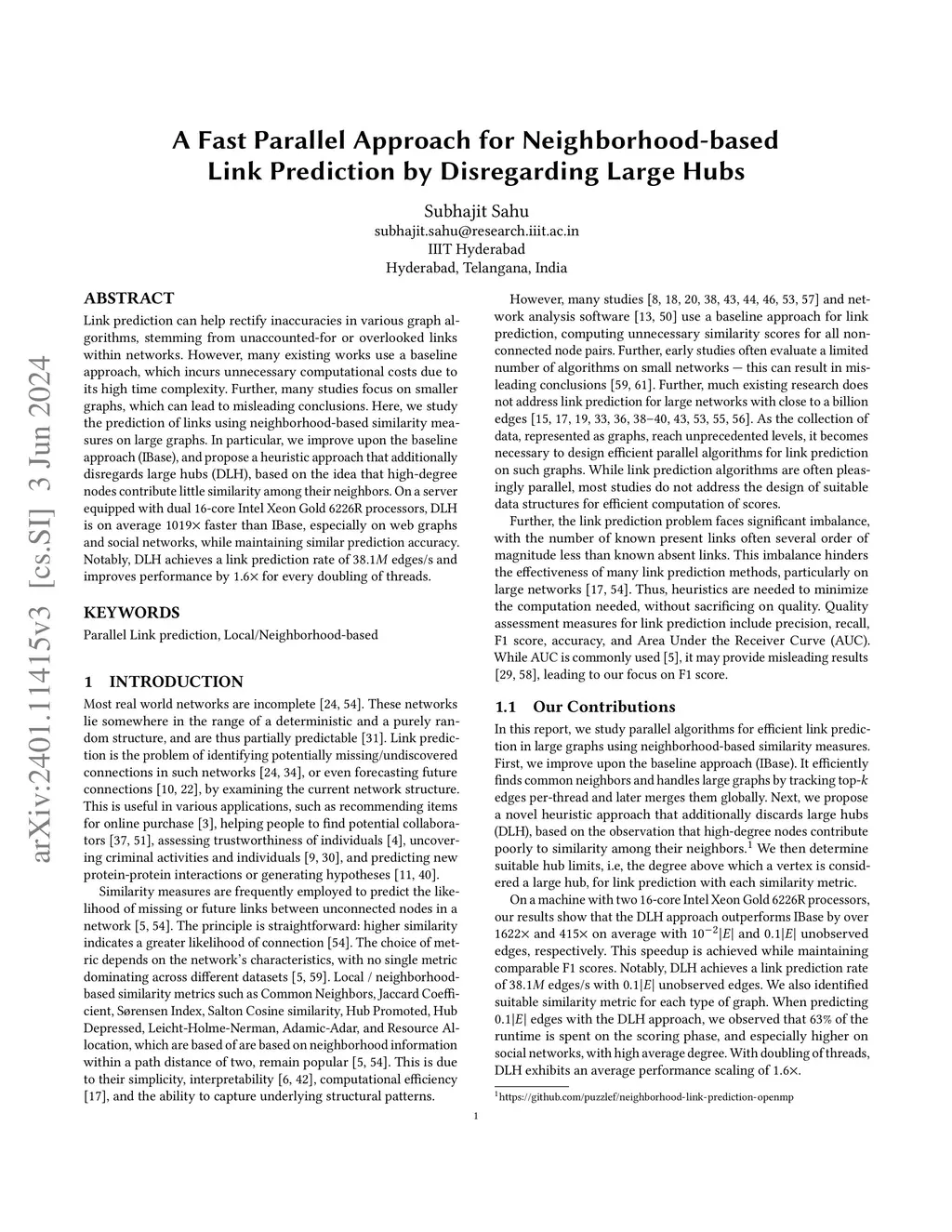 A Fast Parallel Approach for Neighborhood-based Link Prediction by