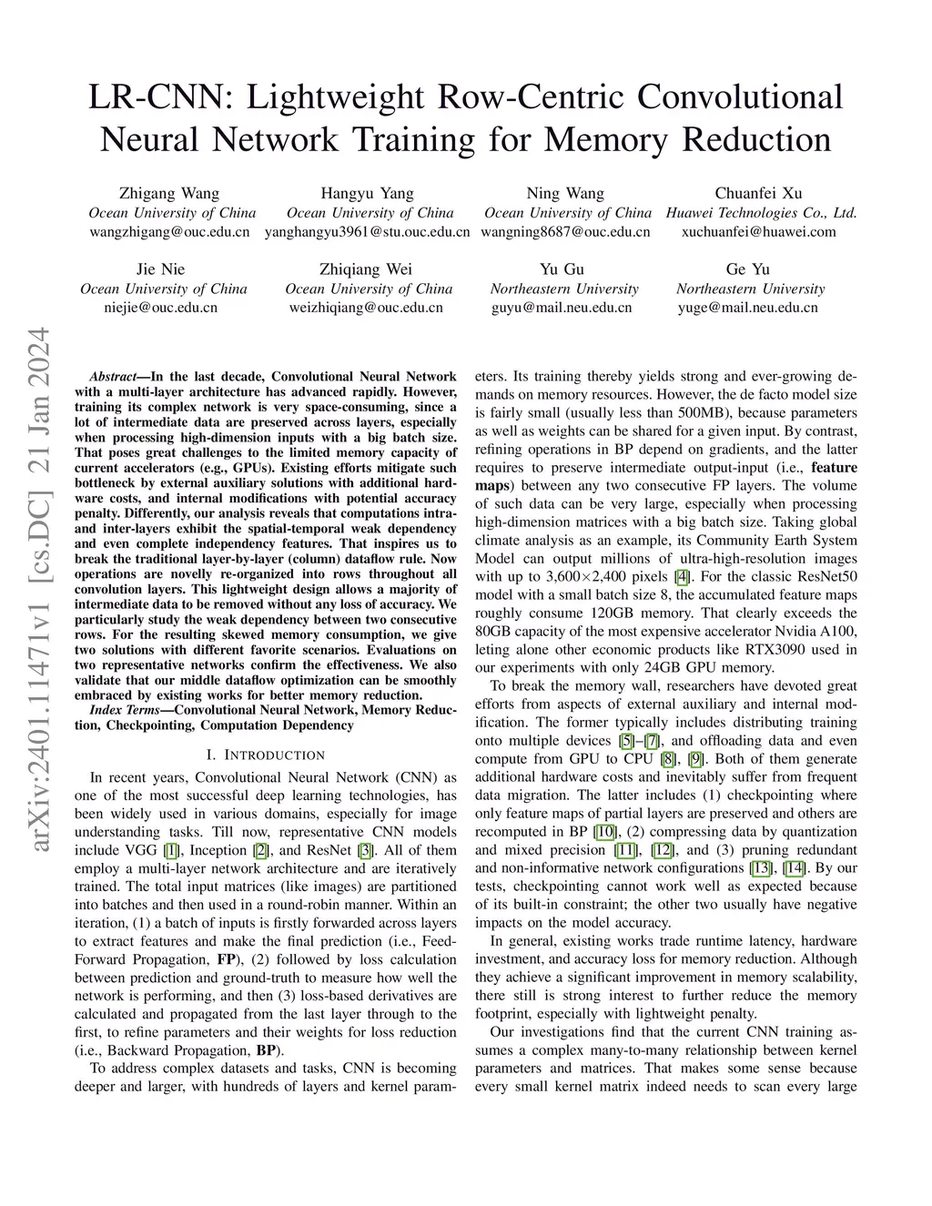 LR-CNN: Lightweight Row-centric Convolutional Neural Network Training