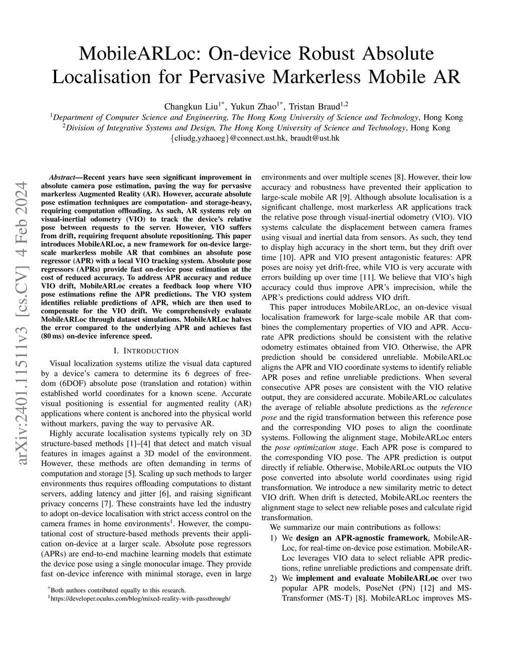 MobileARLoc: On-device Robust Absolute Localisation for Pervasive