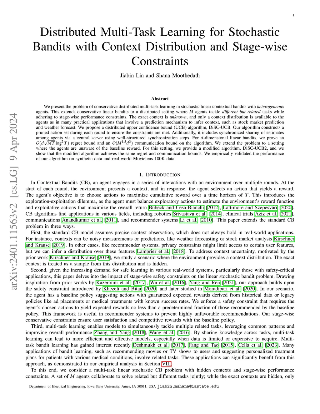Distributed Multi-Task Learning for Stochastic Bandits with Context Distribution and Stage-wise Constraints