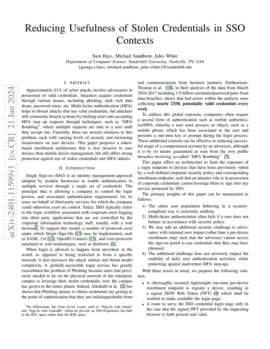 Reducing Usefulness of Stolen Credentials in SSO Contexts