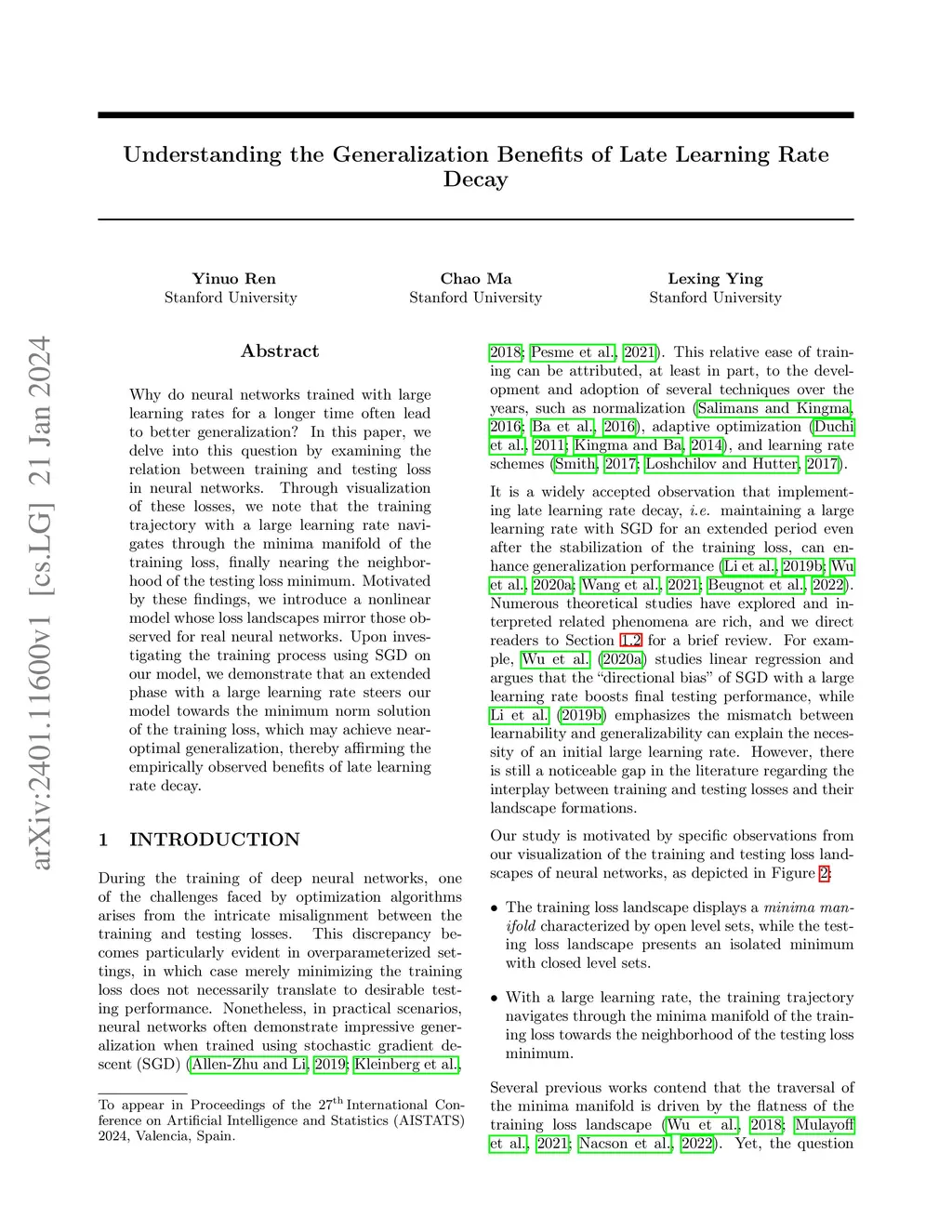 Understanding the Generalization Benefits of Late Learning Rate Decay