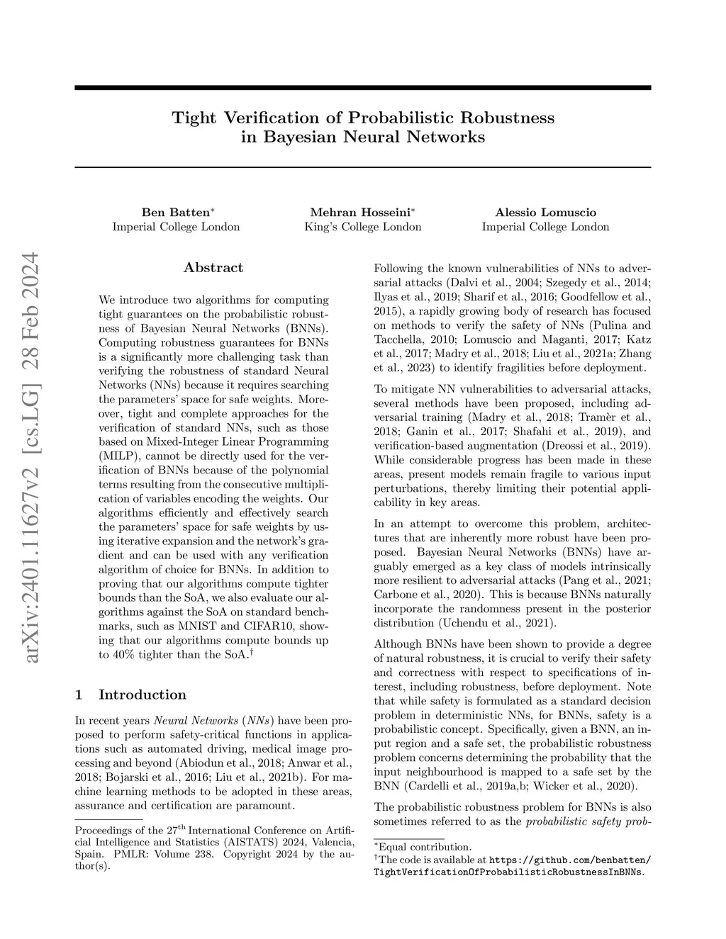 We introduce two algorithms for computing tight guarantees on the probabilistic robustness of Bayesian Neural Networks (BNNs). Computing robustness guarantees for BNNs is a significantly more challenging task than verifying the robustness of standard Neural Networks (NNs) because it requires searching the parameters' space for safe weights. Moreover, tight and complete approaches for the verification of standard NNs, such as those based on Mixed-Integer Linear Programming (MILP), cannot be directly used for the verification of BNNs because of the polynomial terms resulting from the consecutive multiplication of variables encoding the weights. Our algorithms efficiently and effectively search the parameters' space for safe weights by using iterative expansion and the network's gradient and can be used with any verification algorithm of choice for BNNs. In addition to proving that our algorithms compute tighter bounds than the SoA, we also evaluate our algorithms against the SoA on standard benchmarks, such as MNIST and CIFAR10, showing that our algorithms compute bounds up to 40% tighter than the SoA.