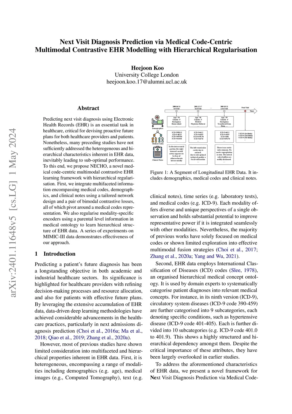 Contrastive EHR Modelling with Hierarchical Regularisation