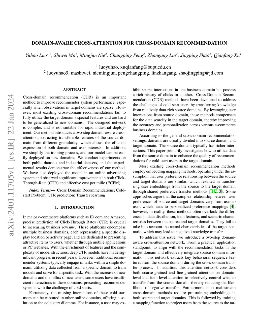 Domain-Aware Cross-Attention for Cross-domain Recommendation