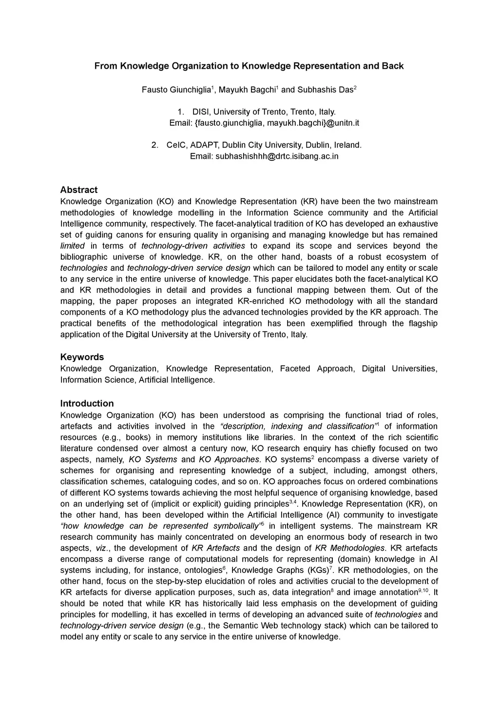 Knowledge Organization (KO) and Knowledge Representation (KR) have been the two mainstream methodologies of knowledge modelling in the Information Science community and the Artificial Intelligence community, respectively. The facet-analytical tradition of KO has developed an exhaustive set of guiding canons for ensuring quality in organising and managing knowledge but has remained limited in terms of technology-driven activities to expand its scope and services beyond the bibliographic universe of knowledge. KR, on the other hand, boasts of a robust ecosystem of technologies and technology-driven service design which can be tailored to model any entity or scale to any service in the entire universe of knowledge. This paper elucidates both the facet-analytical KO and KR methodologies in detail and provides a functional mapping between them. Out of the mapping, the paper proposes an integrated KR-enriched KO methodology with all the standard components of a KO methodology plus the advanced technologies provided by the KR approach. The practical benefits of the methodological integration has been exemplified through the flagship application of the Digital University at the University of Trento, Italy.