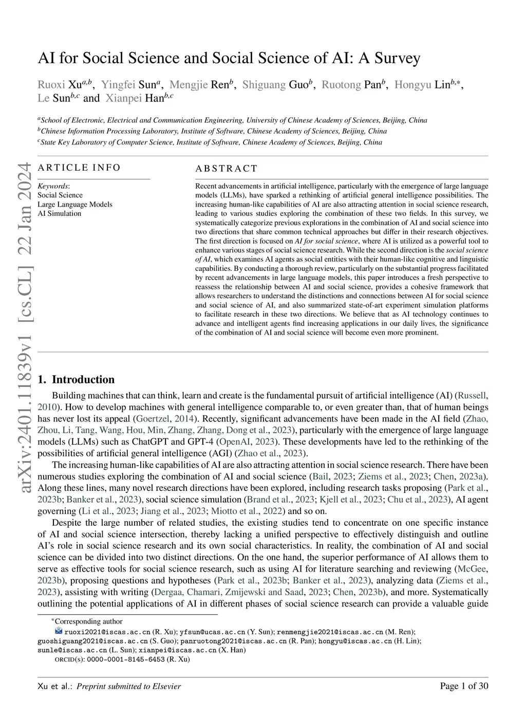 AI for social science and social science of AI: A Survey