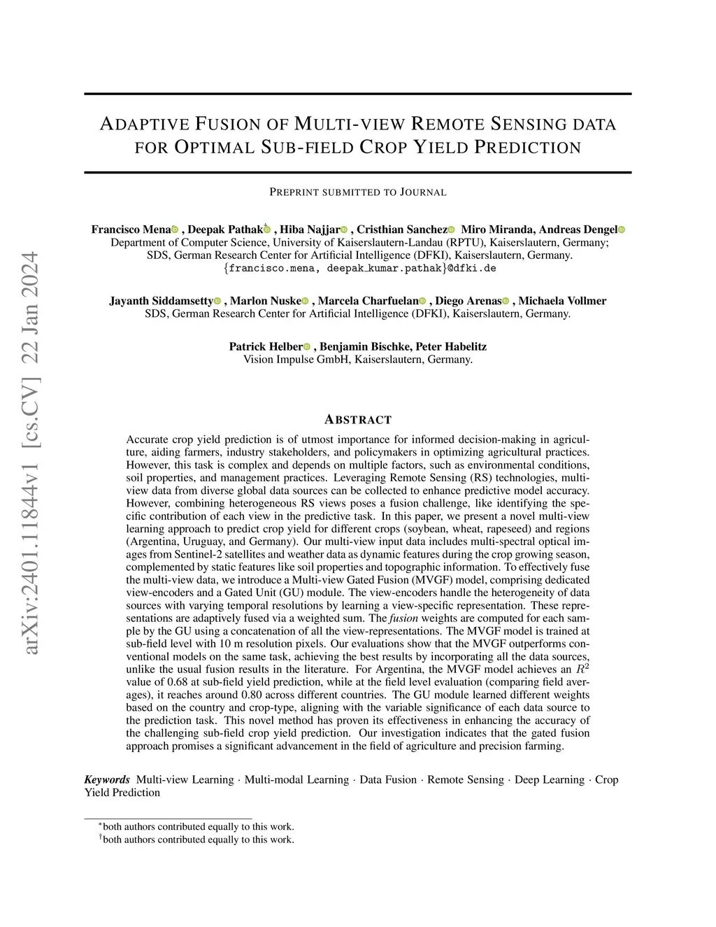Adaptive Fusion of Multi-view Remote Sensing data for Optimal Sub-field